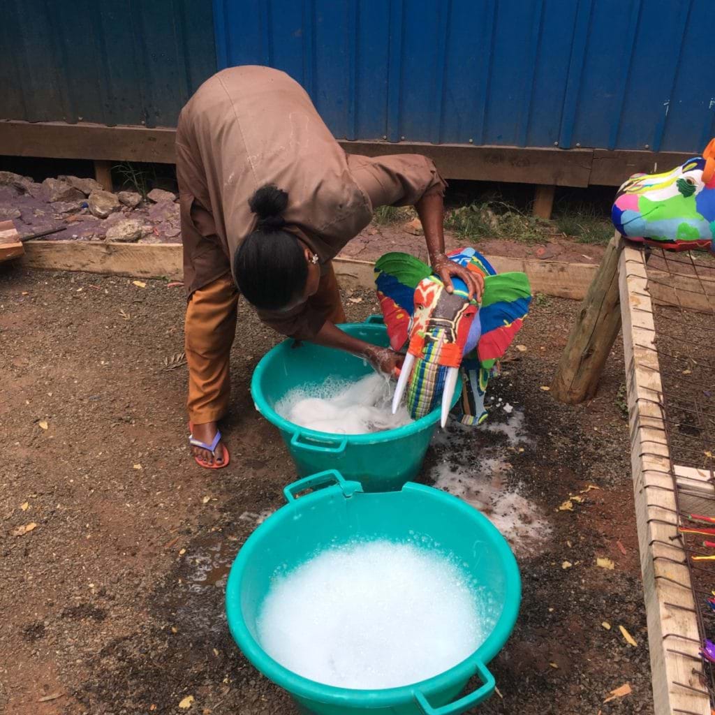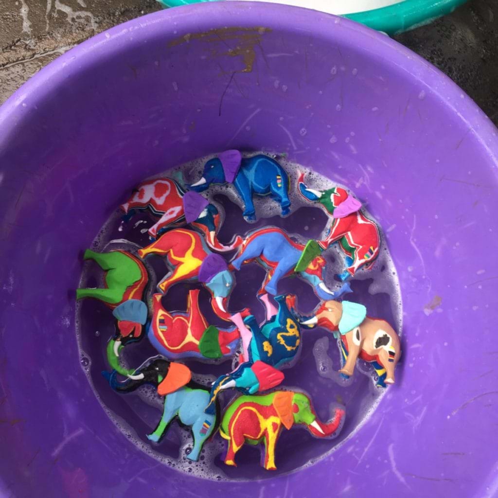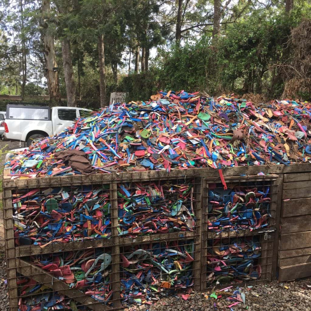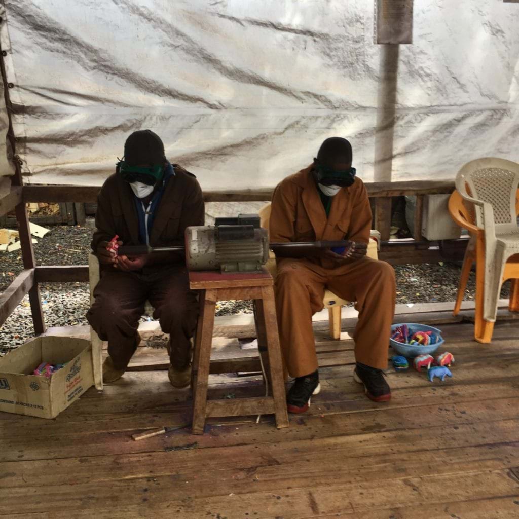 Vi började dagen med att åka till Marula, strax utanför Nairobi. Det var en Kenyansk kvinna (en Kenya-född vit kvinna, kände de sig tvungna att förtydliga) som varit på semester när hela gruppen hoppat i vattnet utan att ta av sig sina flip-flop. Ganska snart kom de ur vattnet, men utan sina skor. Denna (vita) kenyanska insåg då att det fanns ett problem med foppatofflor och flip-flops som flöt runt i havet och startade då ett initiativ för att samla in dem. Tofflorna förs sedan till fabriken i Marula där de förvandlas till fina plaststatyer av djur.