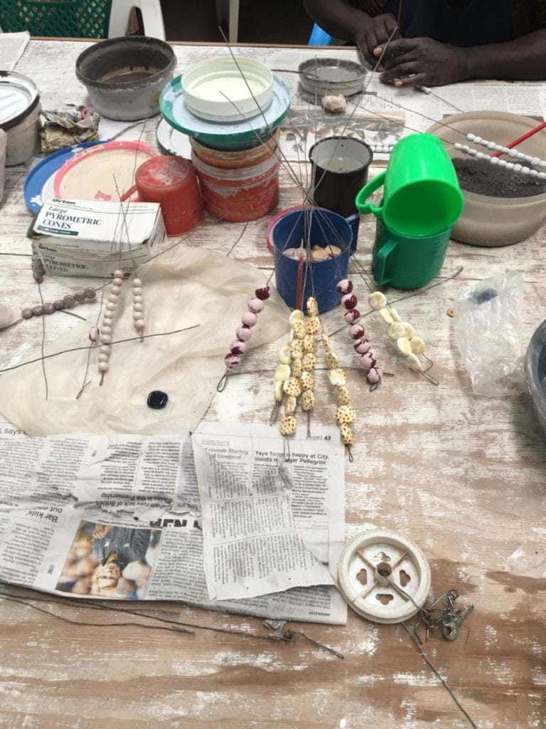 Vi fick en guidad tur även i den här fabriken. Pärlorna formas av kvinnorna av lera som transporteras dit från mount Kenya. Leran får torka ett slag innan de bränns i en ugn i åtta timmar i 1060 grader. Sedan målas de med glaserande färg innan de bränns i ytterligare åtta timmar och skeppas iväg runt jorden.